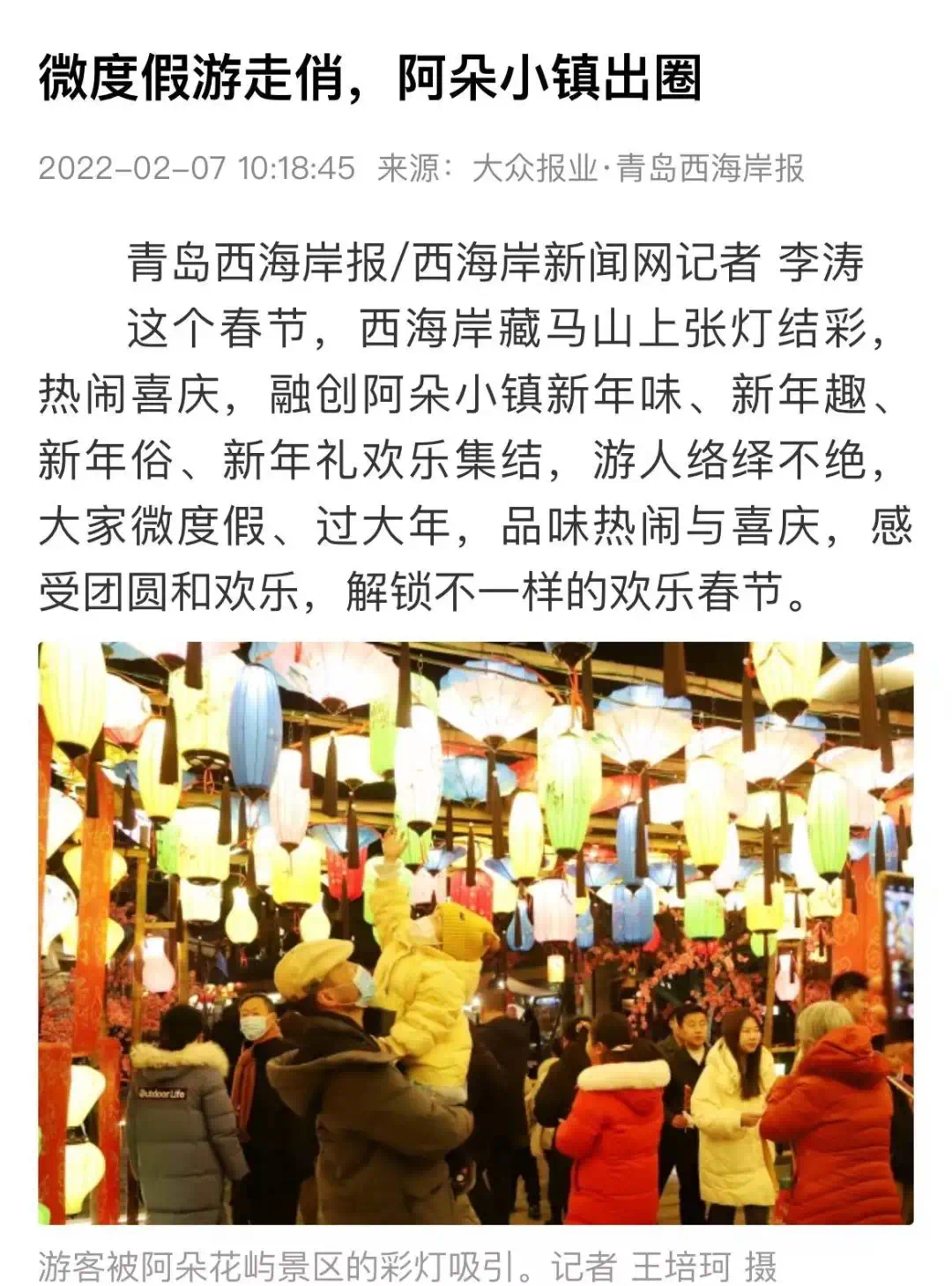 2月7日,大众报业·青岛西海岸报以”微度假游走俏,阿朵小镇出圈”报道阿朵小镇