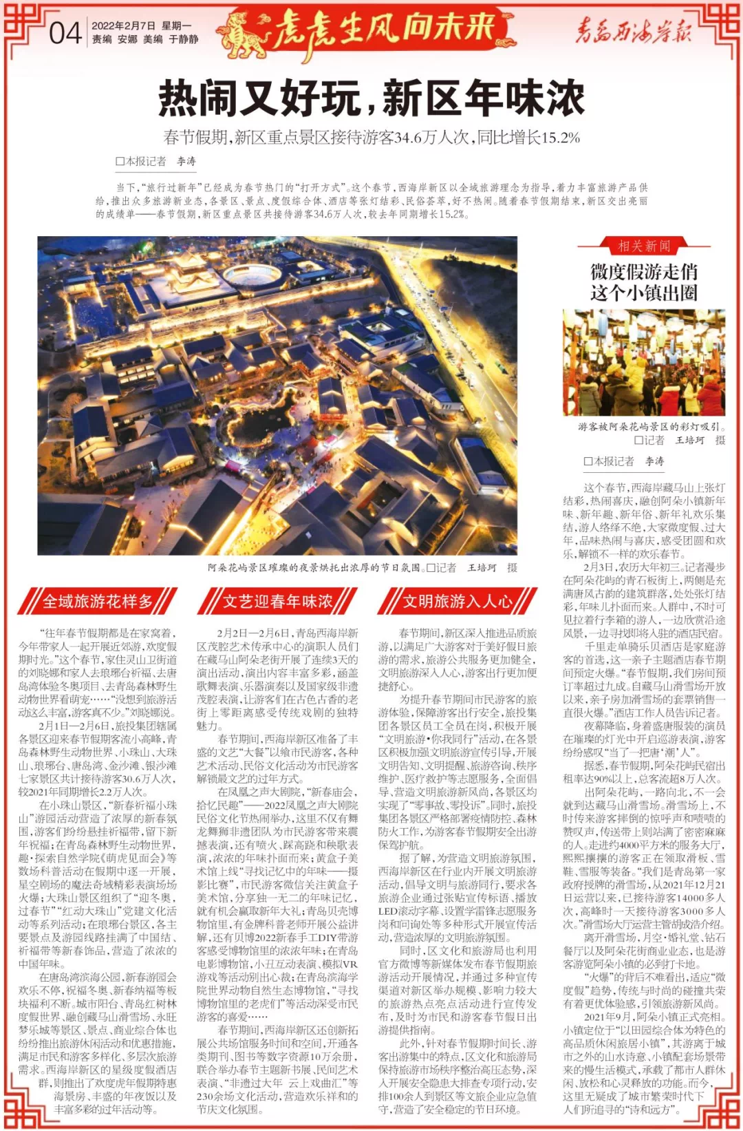 2月7日大众报业·青岛西海岸报以“热闹又好玩,新区年味浓”为专题报道阿朵小镇