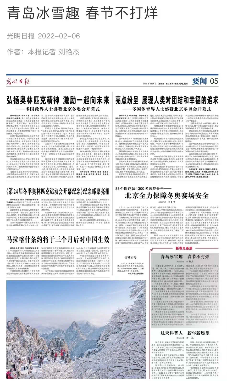 2月6日光明日报以“青岛冰雪趣,春节不打烊”专题报道藏马山滑雪场