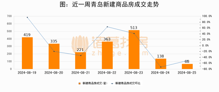 【青岛成交日报】08月25日新房成交68套、二手房37套;涨价房源15套
