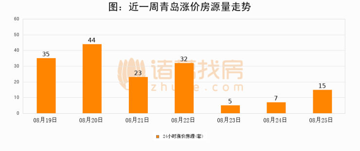 根据诸葛找房数据显示,青岛24小时涨价房源量为15套,较08月24日增加8套,环比上涨114.3%。与此同时,涨价房源占比小幅扩大,业主信心有所提升。