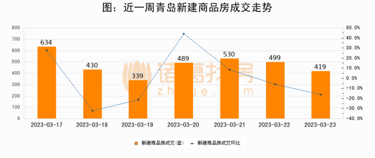 【青岛成交日报】03月23日新房成交419套、二手房315套;涨价房源144套