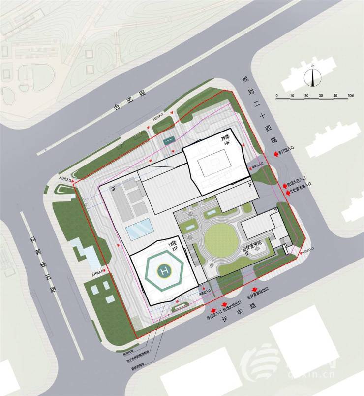 项目规划用地约1.59公顷,规划总建筑面积约9.82万平方米,其中地上建筑面积约6.59万平方米,计容面积约6.36万平方米,地下建筑面积约3.23万平方米,规划为两个楼座(其中一栋为21层,另一栋为19层)及其裙房,停车位609个,地上21个(含3个机场大巴车位及12个公交车车位),地下588个(含150个社会停车车位)。