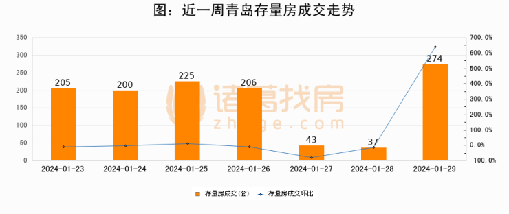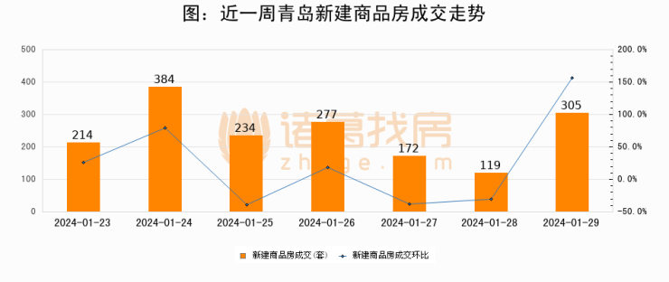 【青岛成交日报】01月29日新房成交305套、二手房274套;涨价房源43套