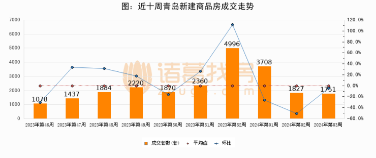 【青岛成交周报】第02周新房成交1751套,二手房1274套,涨价房源518套