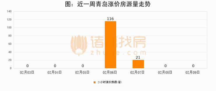 根据诸葛找房数据显示,青岛24小时涨价房源量为0套,较02月08日持平。