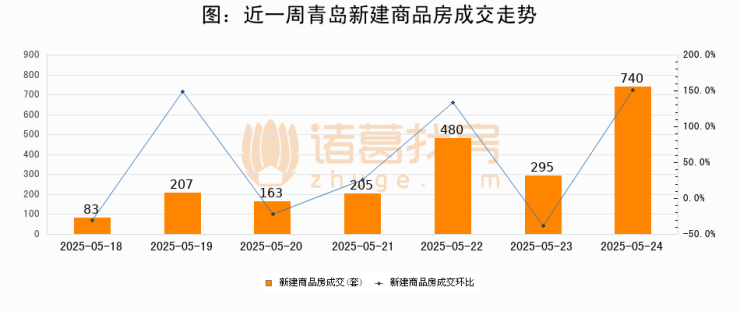 【青岛成交日报】05月24日新房成交740套、二手房81套;