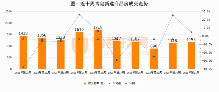 【青岛成交周报】第31周新房成交1173套,二手房1182套,