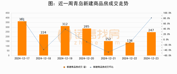 【青岛成交日报】12月23日新房成交247套、二手房254套;涨价房源33套