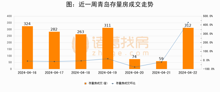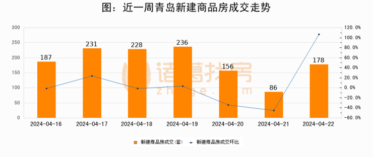【青岛成交日报】04月22日新房成交178套、二手房312套;涨价房源42套