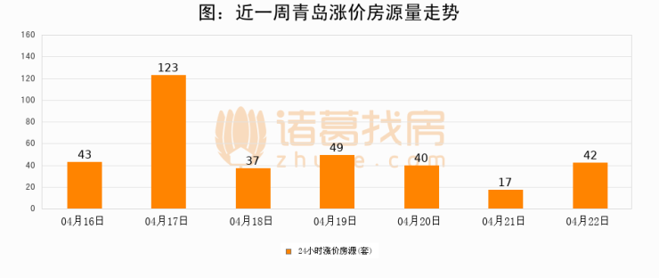 根据诸葛找房数据显示,青岛24小时涨价房源量为42套,较04月21日增加25套,环比上涨147.1%。与此同时,涨价房源占比小幅扩大,业主信心有所提升。