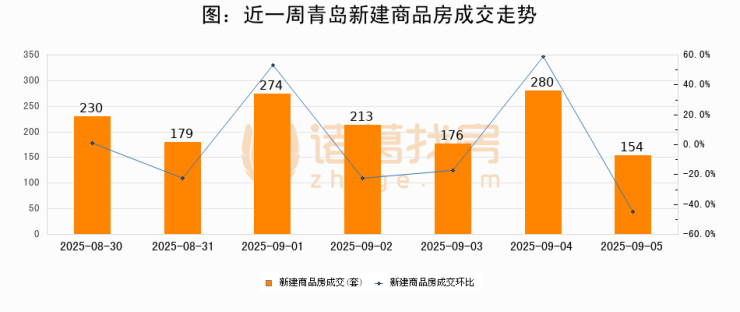 【青岛成交日报】09月05日新房成交154套、二手房204套;