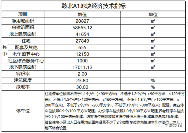 地块位于人民路以东、鞍山一路以西、抚顺路以南、康平路以北,占地面积20827㎡,规划建筑面积58665.12㎡,其中地上建面41654㎡(住宅27849㎡,老年颐养12150㎡),地下建面17011.12㎡,容积率2.0,建筑密度23.80%,绿地率30%。
