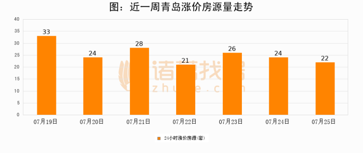 根据诸葛找房数据显示,青岛24小时涨价房源量为22套,较07月24日减少2套,环比下降8.3%。与此同时,涨价房源占比小幅回落,对于购房者来说是一个入市窗口期,购房者可抓住时机入市。