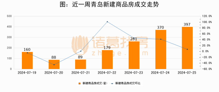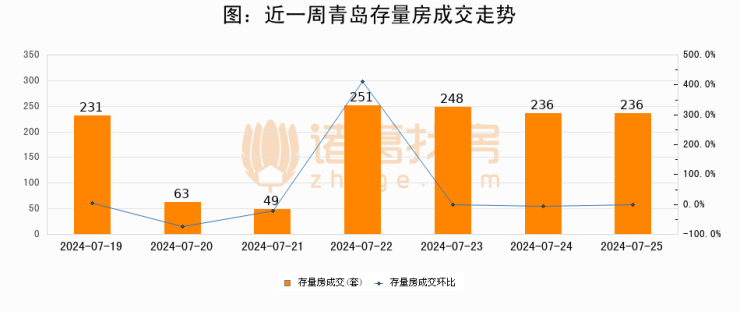 【青岛成交日报】07月25日新房成交397套、二手房236套;涨价房源22套