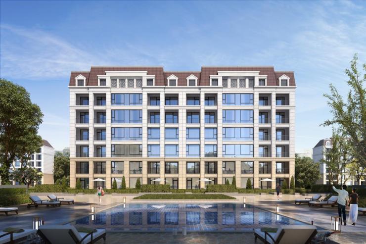 回眸百年青岛历史,经典德式建筑成为青岛文化符号。青特·云境沿袭经典德式建筑风格,采用三段式经典立面格局,立面设计整体风格为古典名仕风格,运用黄金比例美学尺度,立面透出细腻而厚重、典雅而大气的建筑气质。现代艺术与经典文化优质融合,尊贵华丽又不失艺术感。