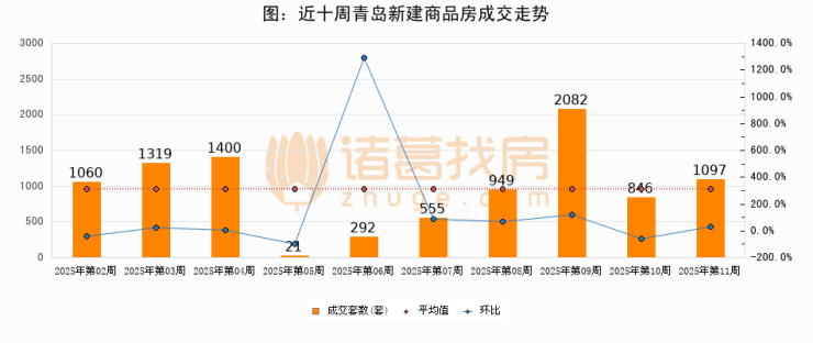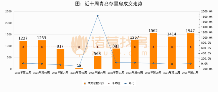 【青岛成交周报】第11周新房成交1097套,二手房1547套,涨价房源128套
