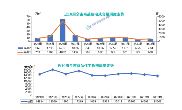 价格方面,上周青岛新建商品住宅均价为13603元/㎡,下降989元/㎡,降幅为6.78%。