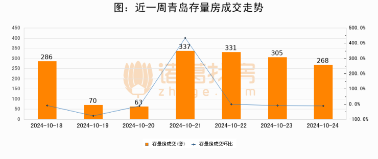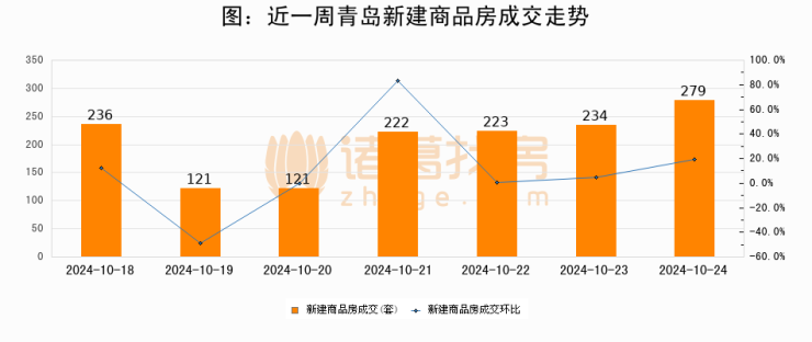 【青岛成交日报】10月24日新房成交279套、二手房268套;涨价房源64套