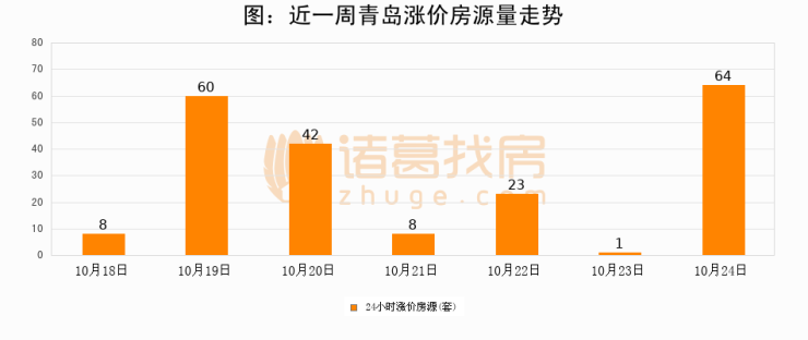 根据诸葛找房数据显示,青岛24小时涨价房源量为64套,较10月23日增加63套,环比上涨6300%。与此同时,涨价房源占比小幅扩大,业主信心有所提升。