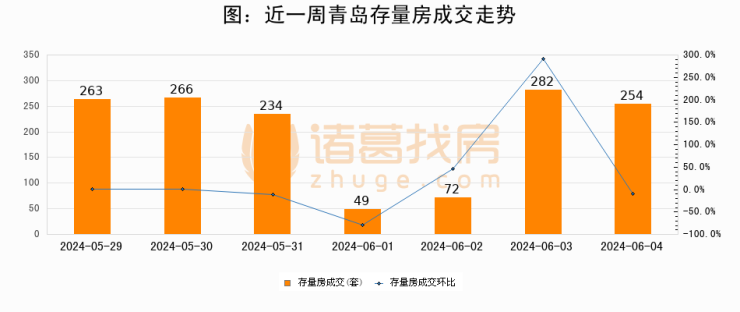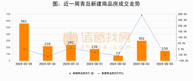 【青岛成交日报】06月04日新房成交150套、二手房254套;