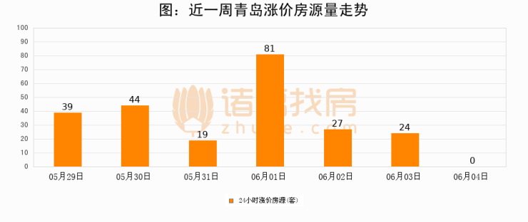 根据诸葛找房数据显示,青岛24小时涨价房源量为0套,较06月03日减少24套,环比下降100%。与此同时,涨价房源占比小幅回落,对于购房者来说是一个入市窗口期,购房者可抓住时机入市。