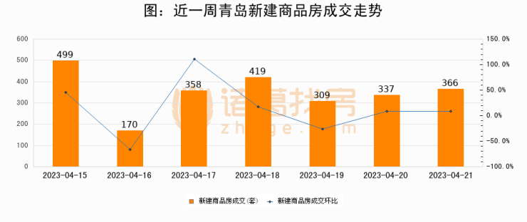 【青岛成交日报】04月21日新房成交366套、二手房273套;涨价房源121套