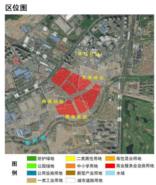 LS0808-015、016、017、018、019、030、031、033、034、035地块位于松岭路以西,株洲路以南,张村河以北,涉及张村、郑张、南张、文张4个社区用地。