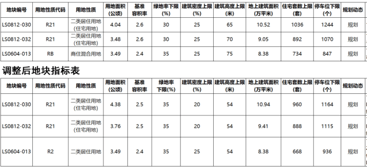 LS0812-030、032,LS0604-013地块位于松岭路以东,将军山以南,张村河以北。此次调整后3宗住宅、商住及商业用地全部为纯住宅地块,总建面28.73万㎡,住宅上限2516套。
