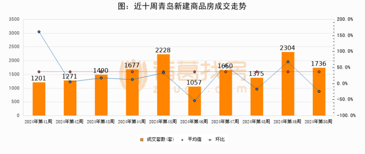【青岛成交周报】第50周新房成交1736套,二手房1601套,涨价房源159套