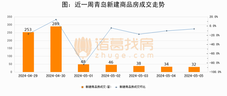 【青岛成交日报】05月05日新房成交32套、二手房26套;涨价房源50套