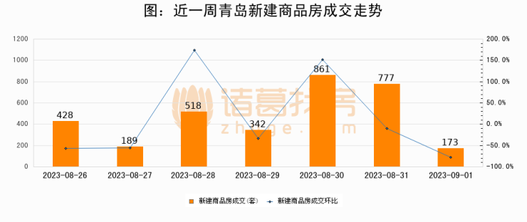 【青岛成交日报】09月01日新房成交173套、二手房161套;涨价房源176套