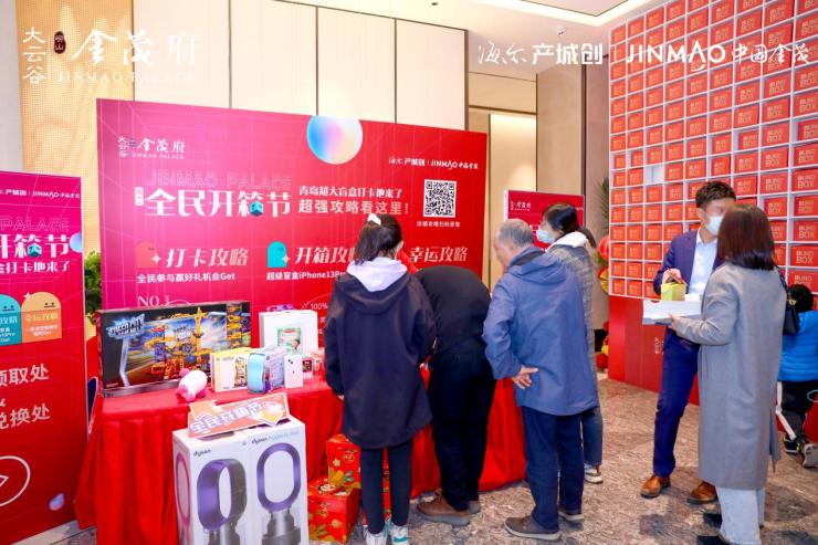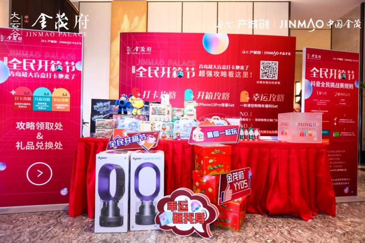 全民开箱节,全民同乐会。活动期间莅临大云谷·金茂府,抖音关注“大云谷崂山金茂府”账号,参与话题“#全民开箱节”,上传盲盒墙打卡视频,并定位“大云谷·崂山金茂府营销中心”,邀约好友点赞、评论并转发,满30个赞即可获参与奖电影票1张,更有机会获得iPhone13Pro、戴森加湿器、小米挂烫机等惊喜大奖!