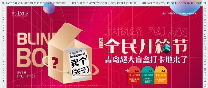 前所未见的青岛巨型盲盒墙,幸运指数超速UP。高颜值、高幸运度、高参与感的“双十一全民开箱节”,吸引各平台网红博主现场打卡!