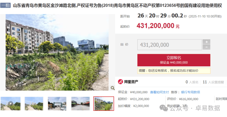 4.31亿!黄岛前海金沙乐府D区48亩低密宅地7折拍卖