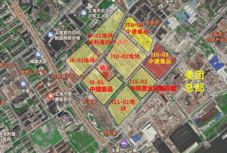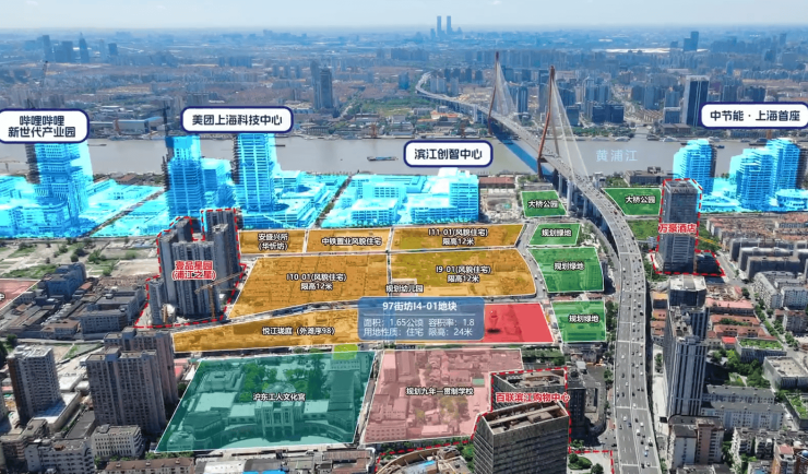 地块周边拥有中节上海能首座滨江创智中心、美团上海科技中心、哔哩哔哩新世代产业园等。