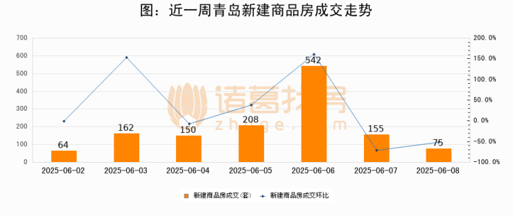 【青岛成交日报】06月08日新房成交75套、二手房59套;涨价房源1套