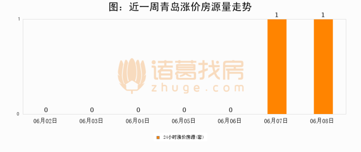 根据诸葛找房数据显示,青岛24小时涨价房源量为1套,较06月07日持平。