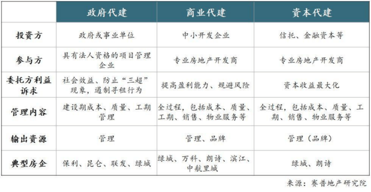 目前,国内代建业务按委托方性质主要分为政府代建、商业代建和资本代建三类。