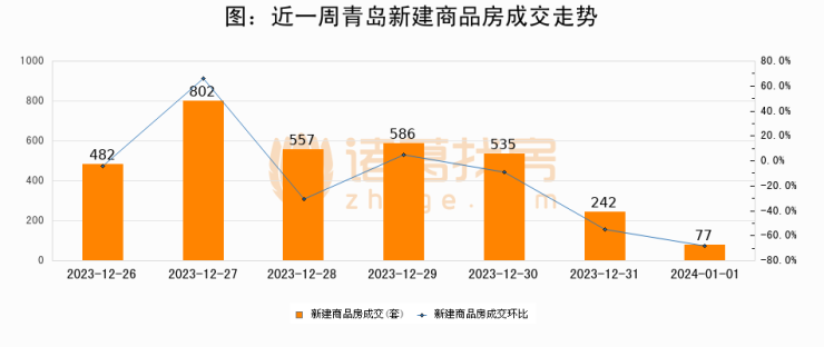 【青岛成交日报】01月01日新房成交77套、二手房6套;涨价房源28套
