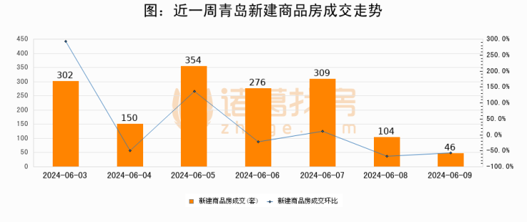 【青岛成交日报】06月09日新房成交46套、二手房20套;涨价房源2套