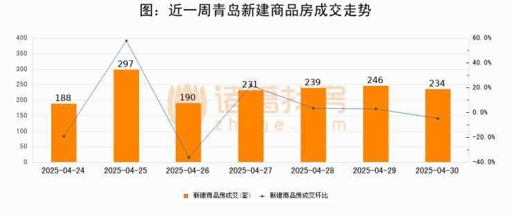 【青岛成交日报】04月30日新房成交234套、二手房211套;