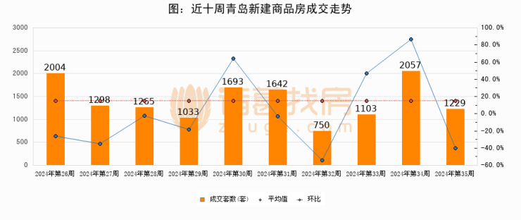 【青岛成交周报】第35周新房成交1229套,二手房1168套,涨价房源178套