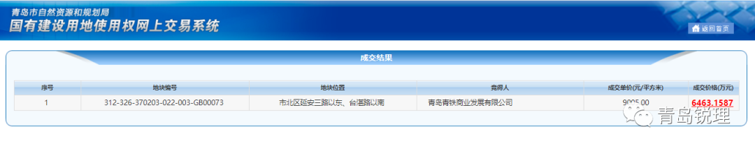 青铁0.65亿获得市北区延安三路以东地块 总建面0.81万㎡