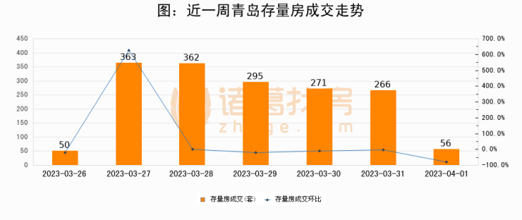 从存量房来看,2023年04月01日青岛存量房单日成交56套,比昨日减少210套,环比下降79%。从近一周存量房成交来看,青岛存量房日均成交套数为237套,04月01日单日成交56套,低于近一周平均水平76.4%。