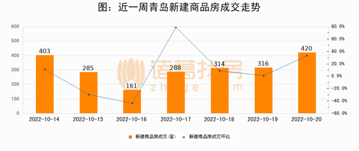 【青岛成交日报】10月20日新房成交420套、二手房216套;涨价房源61套