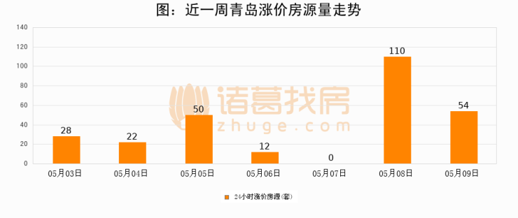 根据诸葛找房数据显示,青岛24小时涨价房源量为54套,较05月08日减少56套,环比下降50.9%。与此同时,涨价房源占比小幅回落,对于购房者来说是一个入市窗口期,购房者可抓住时机入市。