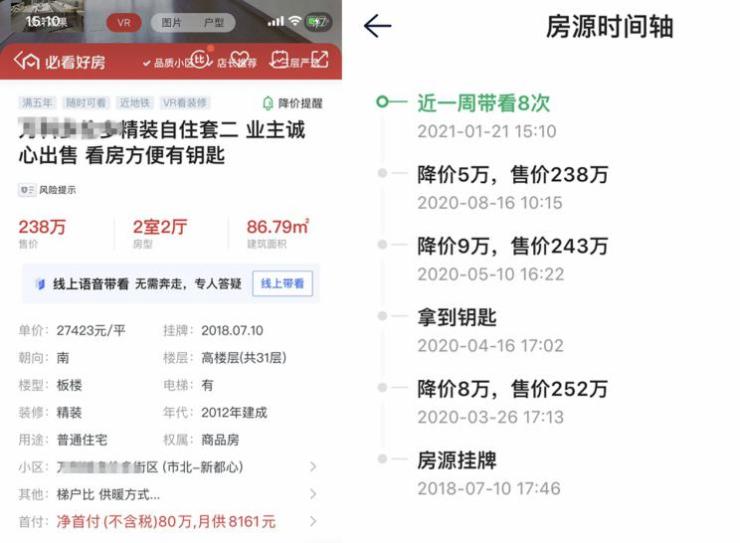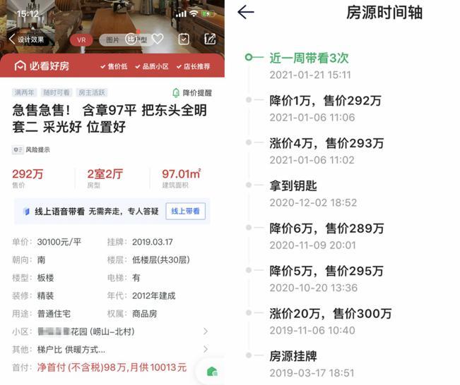 这是同小区的另一个房源,挂牌一年多,房东先后降价两次,降价幅度比较“猛”,达到60万。