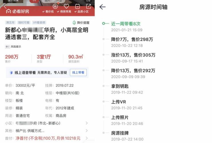 这是新都心某三居二手房,2019年7月挂牌,房源共降价7万。