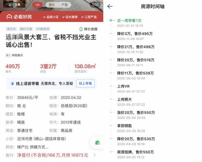 为了更直观的体现当下的市场,我们从二手平台上找了几套近期带看次数比较多的房源。